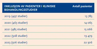 Fleire nye pasientar i kliniske behandlingsstudiar