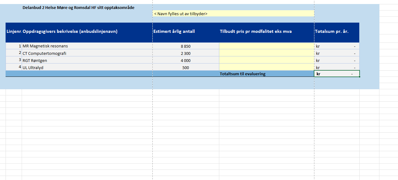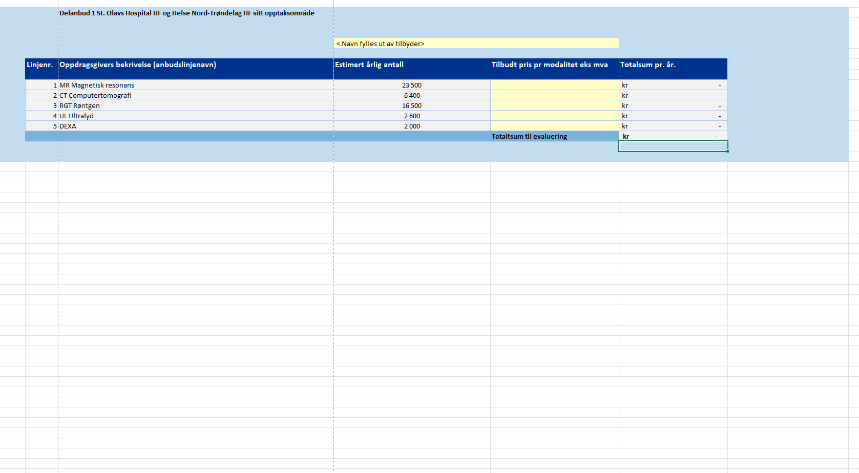 Estimert årlig volum delkontrakt 1, St. Olavs hospital og Helse Nord-Trøndelag
