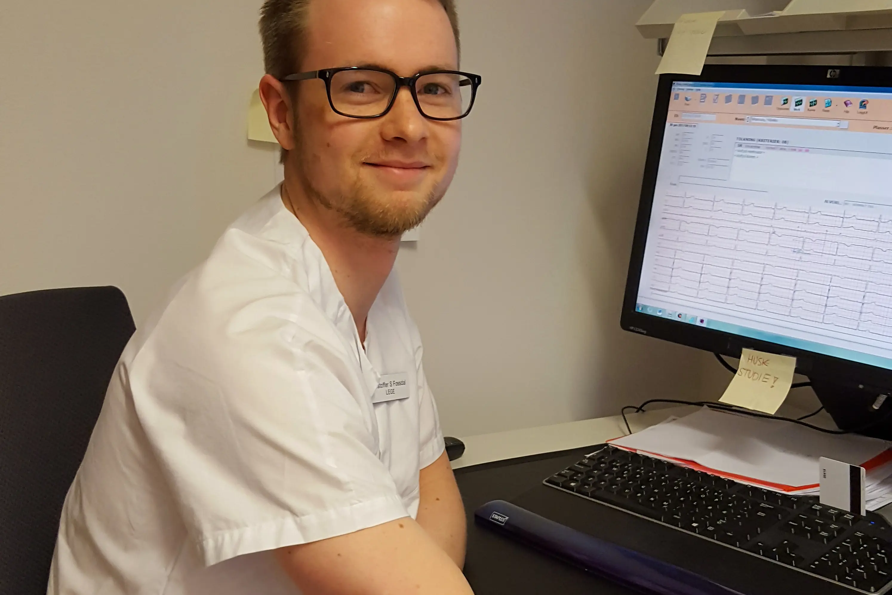 Kristoffer S. Fossdal mener det er en fordel at EKG kommer raskt inn i journalen, men han er avhengig av å ha en PC tilgjengelig.